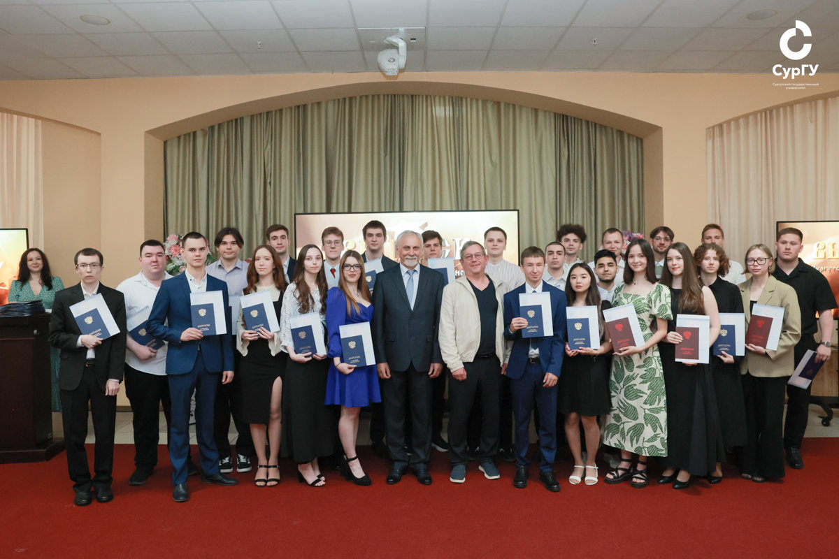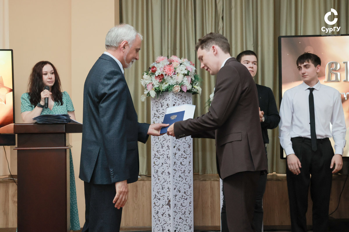 Во время торжественной церемонии состоялось вручение ценных подарков от ПАО «Сургутнефтегаз». Компания активно сотрудничает с вузом, предоставляя студентам места для прохождения практик. Три выпускника Политехнического института Полина Безымяная, Алёна Киреева и Кирилл Давыдов получили «корпоративные портфели» за высокие результаты работы. Теперь их ждут в компании уже в качестве молодых специалистов.