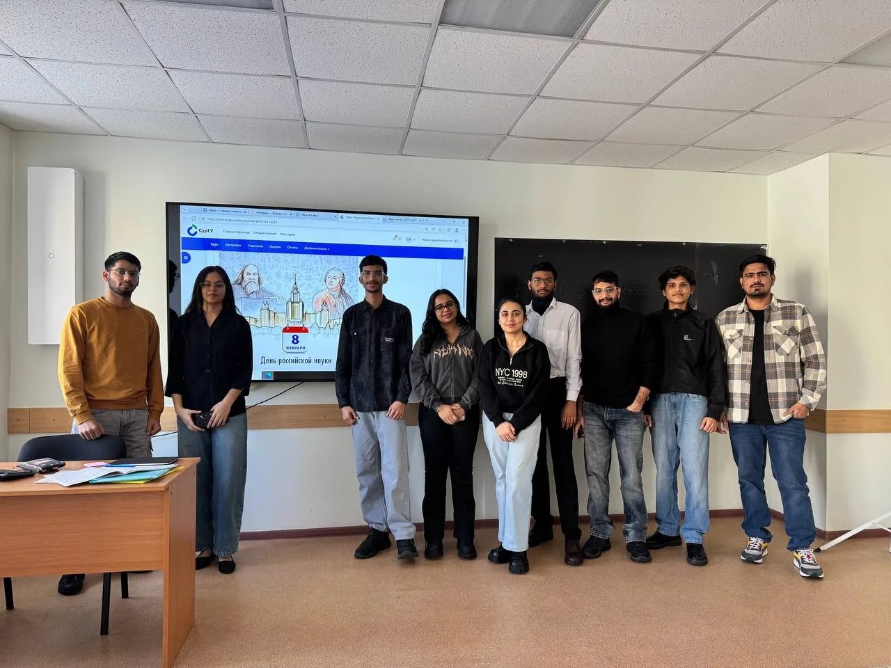 Преподаватели кафедры иностранных языков Института гуманитарного образования и спорта Сургутского госуниверситета в период с 6 по 9 февраля в рамках проекта «Студолимп» организовали и провели олимпиаду День российской науки: история и традиции» для иностранных студентов первого курса, обучающихся в Медицинском институте.
